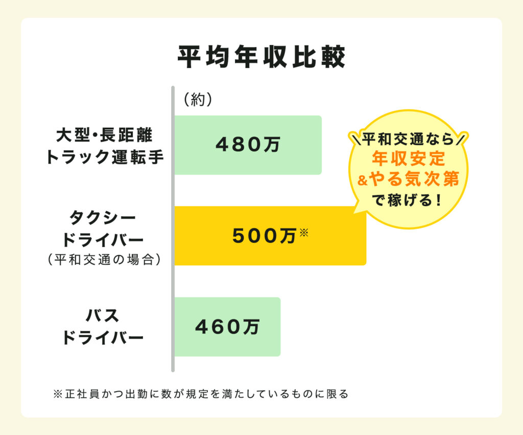 また、会社によっては各種手当がもらえることもありますが、平和交通株式会社では、以下のような手当を用意しています。