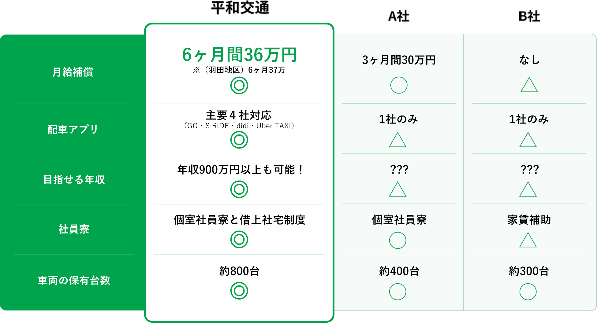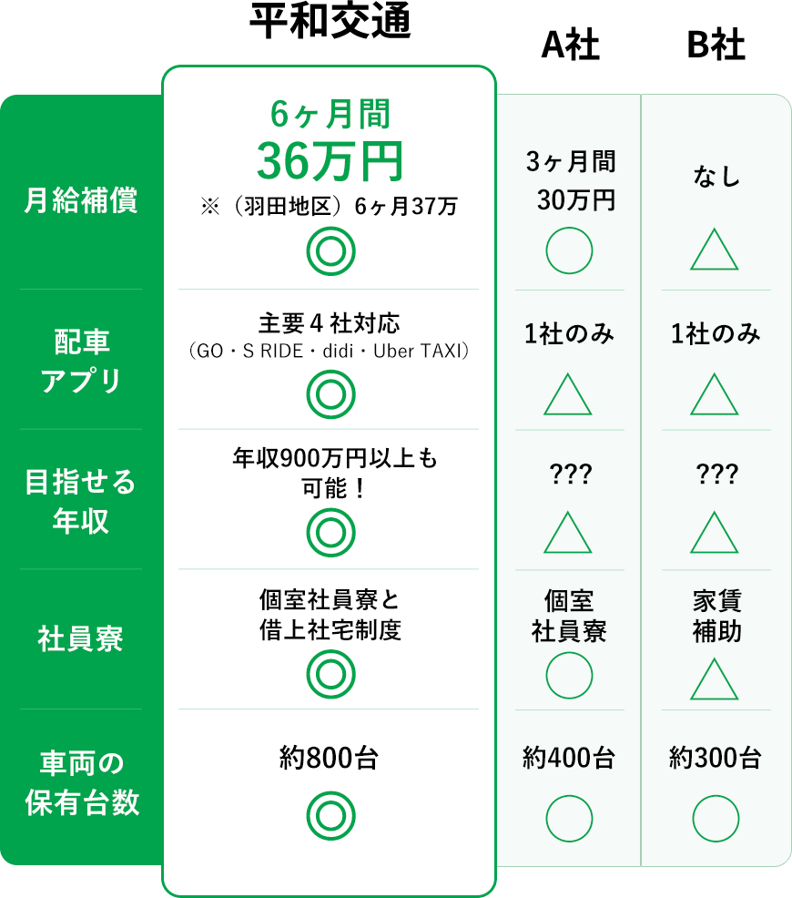 横浜・川崎/都内・羽田の各地域で、平和交通の年収水準はトップクラス!